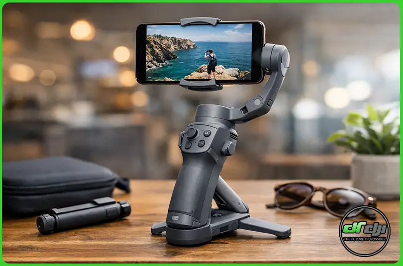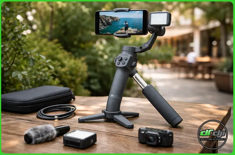 یکی از ویژگیهای جذاب این گیمبال، وجود سهپایه داخلی تاشو است. کافی است پایه را باز کنید تا دستگاه روی میز یا زمین قرار بگیرد. این موضوع برای ضبط تایملپس، لایو استریم یا مصاحبههای ثابت بسیار مفید است.