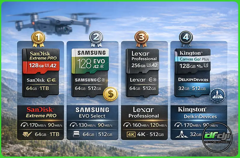 وقتی پای ضبط حرفهای با هلیشات DJI به میون میاد، انتخاب کارت microSD اشتباه میتونه به معنی از دست رفتن لحظات ناب هوایی باشه. در این بخش، ۵ تا از بهترین کارتهای حافظه microSD مناسب DJI رو معرفی میکنیم که امتحان خودشون رو در دنیای فیلمبرداری هوایی پس دادن. همه این مدلها با ویدئوی 4K سازگار هستن و مناسب انواع مدلهای DJI از جمله DJI Mini 3 Pro، Mavic 3، Air 2S و Avata هستن.